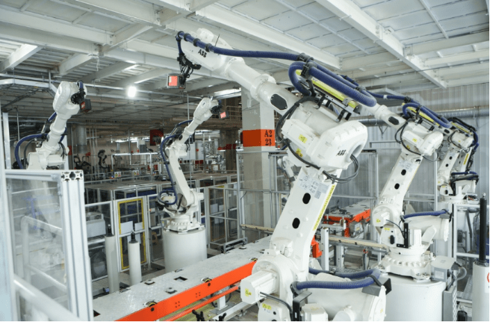 红旗工厂总装车间,已成为国内首个“全无人配送”车间。偌大的工厂里,最忙碌的“搬运工”当属AGV导航车。红旗工厂总装车间有近200台各种型号的AGV导航车,它们沿着地面上33条灰色磁条按程序设定轨迹行走,车上装有红旗车各种类型的配件。这条全线AGV自动物流系统其采取RFID自动识别技术,可自动识别物料配送位置,同时能够自动识别前方行人,进行减速或避让,真正做到智能物流。从零部件到整车,AGV自动物流系统将汽车装配的各个环节所需物料精准配送,节省了大量人力。此外,被戏称为“大黄鸭”的机器人特别引人注意,它是国内最大型的工业机器人,臂展达4.2米,最大负载1.7吨,主要用途是将从涂装车间运送来的车身快、准、稳地转运到一次内饰线T0工位上。而通过安装在手臂上的视觉导引系统,“大黄鸭”可以精确抓取车身,最大程度保证车身表面不被刮伤。