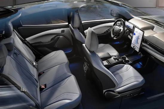 内饰部分,除了方向盘上的Mustang标识外,其余设计则均遵循当下新能源车的一贯设计思路,整体风格相当简约。新车中央部分竖置的15.5英寸中控屏尤为吸睛,底部仅留有一个旋钮进行操作。此外,新车屏幕内部还搭载有最新版本的SYNC系统,支持OTA升级、并带有自然语音识别等交互功能。与此同时,新车在驾驶位前方也设置了一块全液晶仪表,行驶信息显示得较为全面。