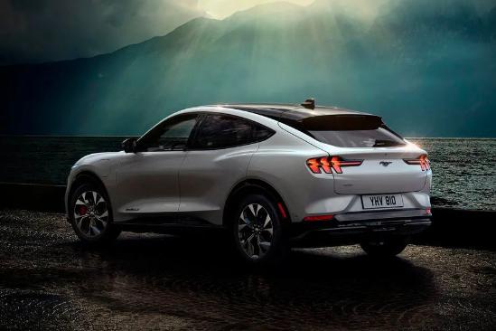Mach-E的外观参考了众多Mustang的经典设计元素,长车头、机盖上隆起的筋线、锐利细长的前灯组以及灯组内部的竖型结构等,均突显出美式性能车的力量感。而在新车较长的车头内,还配备有容积为136L的前备厢。此外,溜背式的车顶线条以及与现款Mustang相似度颇高的尾灯组设计等,均再次强调其拥有纯正的Mustang血统。而封闭式的前格栅以及隐藏式的门把手等,则在一定程度上表明其新能源车的本质。