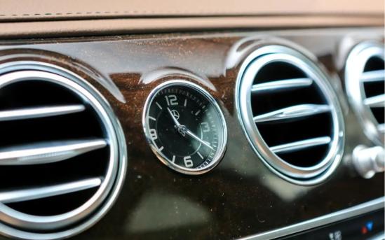 在中控台正中的实木饰板里,还镶嵌着一块打着自家品牌LOGO的石英钟,看上去竟有种复古的味道,在整体科技豪华的氛围中增加了一丝古典的情趣。