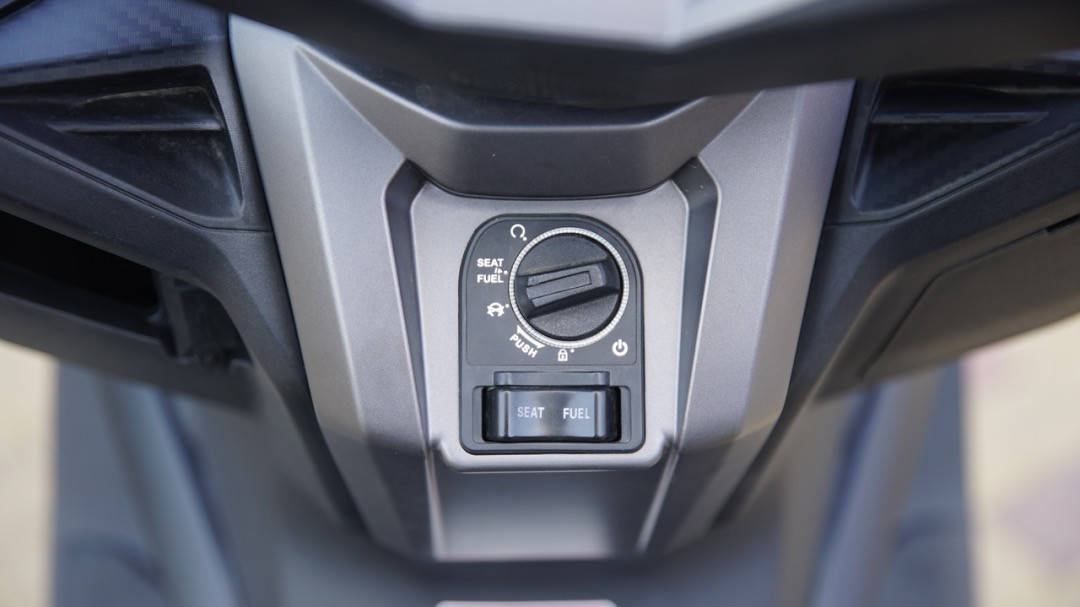 整车的储物空间较规整,放下全盔不成问题,而且前部的储物盒中还贴心的加入了绒布。还有双音喇叭的细节更是贴心,用力按下就会发出明亮的嗓音,提醒那些靠近你的危险速速离开。