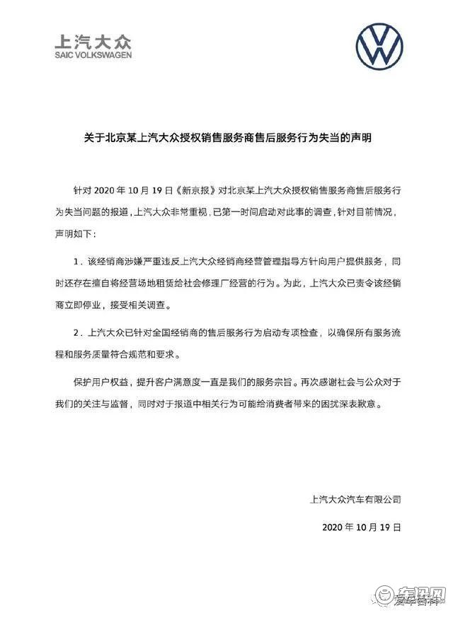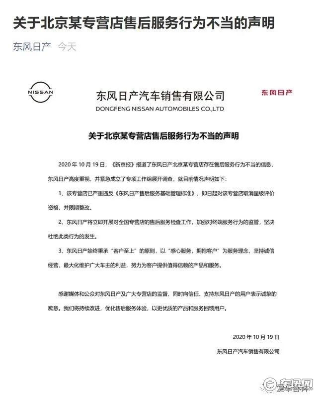 在被媒体曝光后,上汽大众和东风日产都在第一时间发表了声明,向用户致歉。在多个部门介入调查后,这两家4S店也都停业整顿。