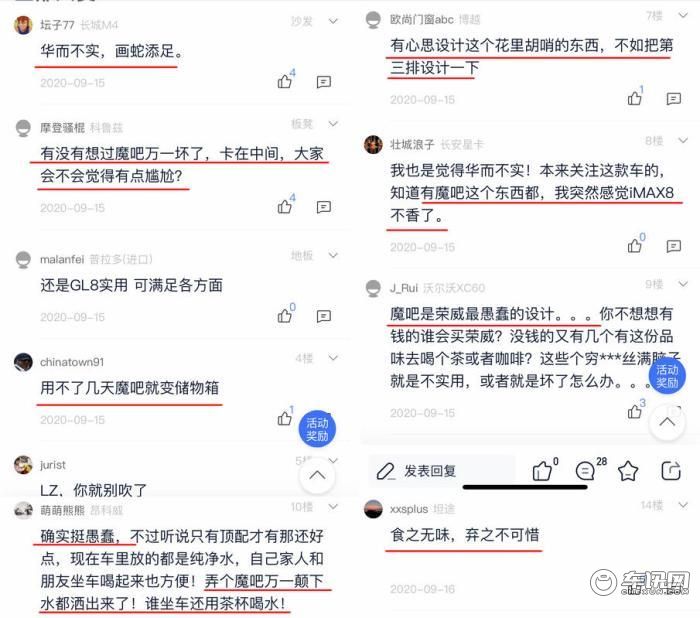关于荣威iMAX8,绝大部分用户都是不看好的,因为MPV嘛,空间最重要,还不如在车内多增加一些储物空间,或者是把魔吧改成移动的小桌板,类似于大众迈特威的那样,都可以。而且魔吧的存在还增加了成本,所以消费者也建议,这个配置最好是选装的配置。