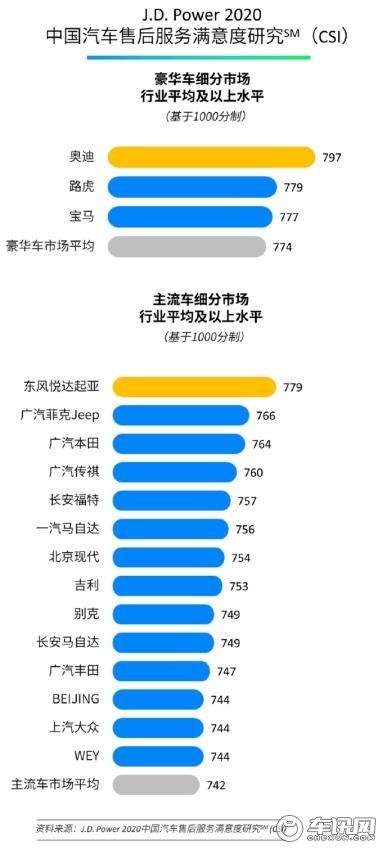 11月5日,J.D. Power 2020中国汽车售后服务满意度研究 (CSI)正式发布,东风悦达起亚以779分的总成绩荣登主流车细分市场榜首,连续2年排名第一,连续8年入围前五。