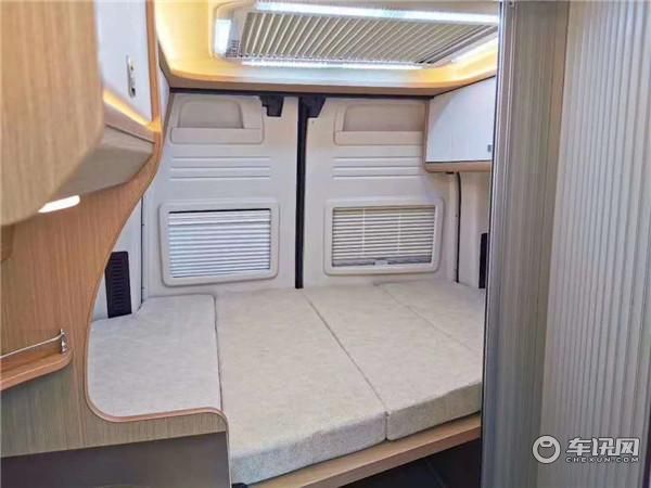 车尾处配备了一张横置双人床,并通过对两侧车窗重新开模的方式增加了床铺的使用面积,尺寸达到了1850×1200(mm),突破了新全顺后横床长度不足1米8的限制。