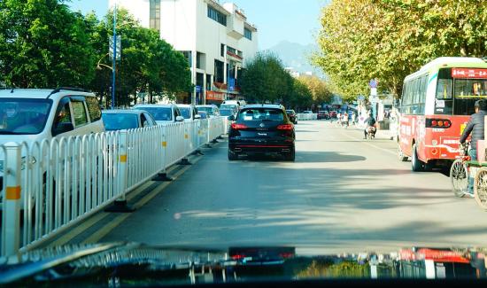 在室外温度不超过17摄氏度,道路拥堵状况良好的丽江城区,最高限速50公里/小时,将途锐eHybrid调节至EV+经济模式,以降低因为信号灯和斑马线自动停车礼让行人等交通习惯带来的高能耗。