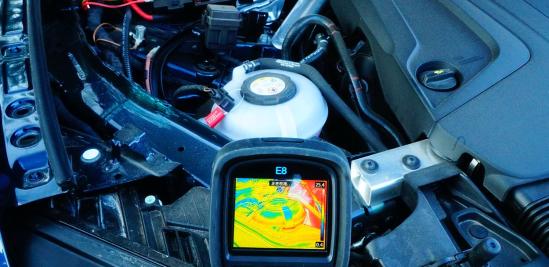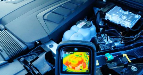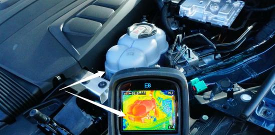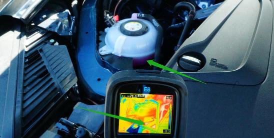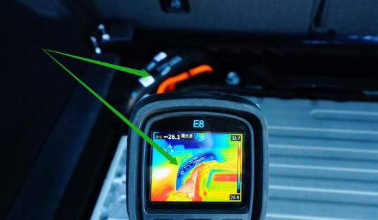 通过热成像仪获取“怠速”状态,车辆的发动机与驱动电机共享循环管路内冷却液约为26.3摄氏度。