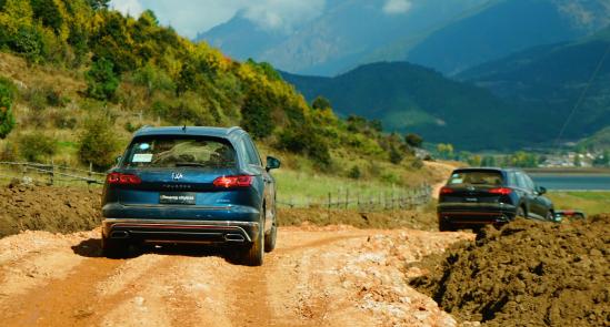 在对途锐eHybrid进行多种路况测试前,对搭载V型6缸3.0 TSI发动机的途锐燃油版进行了试驾,感受了一下最大输出功率340千瓦、最大输出扭矩450牛米的“推背感”与通过复杂路况充沛的动力储备。然后对途锐eHybrid在铺装路面进行了试驾(PHEV模式+SPORT模式),经过电动化加持,以性能取胜的PHEV技术解决方案,可以轻松超越以扭矩线性输出的大排量带有涡轮增压技术加持的内燃机。