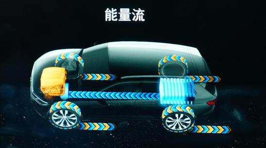 在短时间通过复杂路况所需要最大扭矩输出时,途锐eHybrid的2.0 TSI发动机和驱动电机联合做工输出扭矩(此时能量流显示为来自2.0 TSI发动机和来自动力电池的能量流全部汇总至前后驱动桥)。