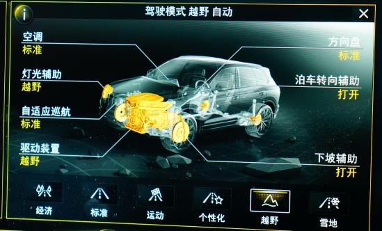 将途锐eHybrid调节至越野模式后,整车控制系统为空调、灯光、方向、辅助驾驶等分系统装入预设的参数(降低能耗,将更多动力用于驱动)。途锐eHybrid进入越野模式,前后驱动桥扭矩分配比例首先固化为50:50;当桥间出现速度差扭矩进行实时再分配,甚至托森式中央差速器闭锁将前后驱动桥扭矩分配比例锁定在极限的30:70。