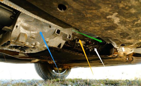 蓝色箭头:将8AT固定在车身焊接的铝材质托架