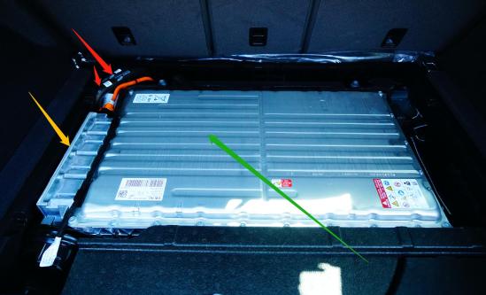 绿色箭头:全铝材质的动力电池总成