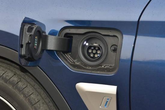 侧面线条比较硬朗,车身尺寸比宝马X3稍大。其长宽高分别为4746/1891/1683mm,轴距为2864mm。和现在能看到的很多纯电SUV不同,它的慢/快充电口并没有放在一起。交流慢充接口在车身左前方翼子板上,直流快充接口在车身右后方。