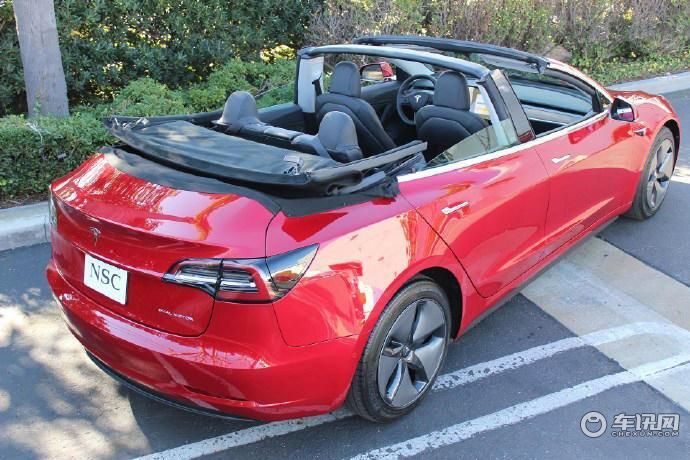 近日,有海外媒体曝光了一辆敞篷版MODEL 3车型,这当然不是官方推出的车款,而是美国一家叫做Newport Convertible Engineering(NCE)的公司改装的,这家公司主要就是将各种豪华汽车改成敞篷车。车辆采用软顶形式,还加装了防滚架,看起来别有一番味道。