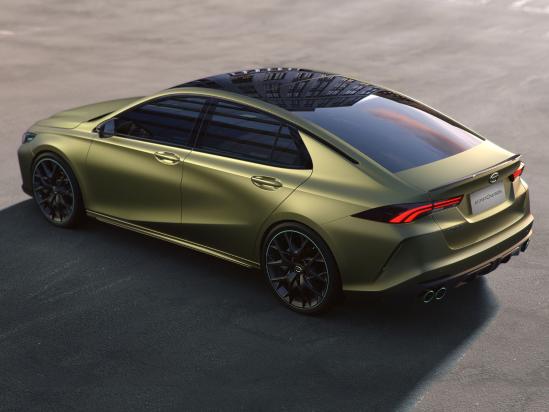如此一来,整个侧面造型更显十分舒展。车侧肩线从大灯一直贯穿到车尾,并且有深浅的变化。再加上车身下部一个非常明显的上扬折线,显得肌肉感十分紧绷。