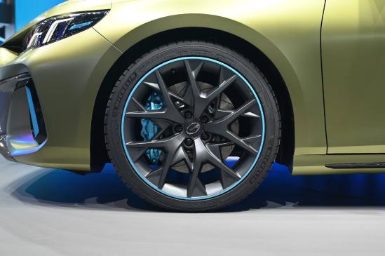 卡钳和前脸相互呼应,也使用了亮蓝色的涂装。从实车上看,前后卡钳采用了多活塞的固定式卡钳,视觉效果爆炸。但不知道未来的量产车会不会延续这种设计。