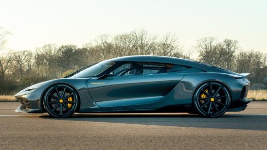 Gemera的侧面相当修长低矮,各种交错的曲面营造出优雅的视觉效果,同时还能提供出色的空气动力学特性。尺寸方面,Gemera作为一辆四座GT三围达到了4975/1988/1295mm,轴距为3000mm,行驶状态下离地间隙117mm,在面对减速带时前桥最多可以提升35mm。