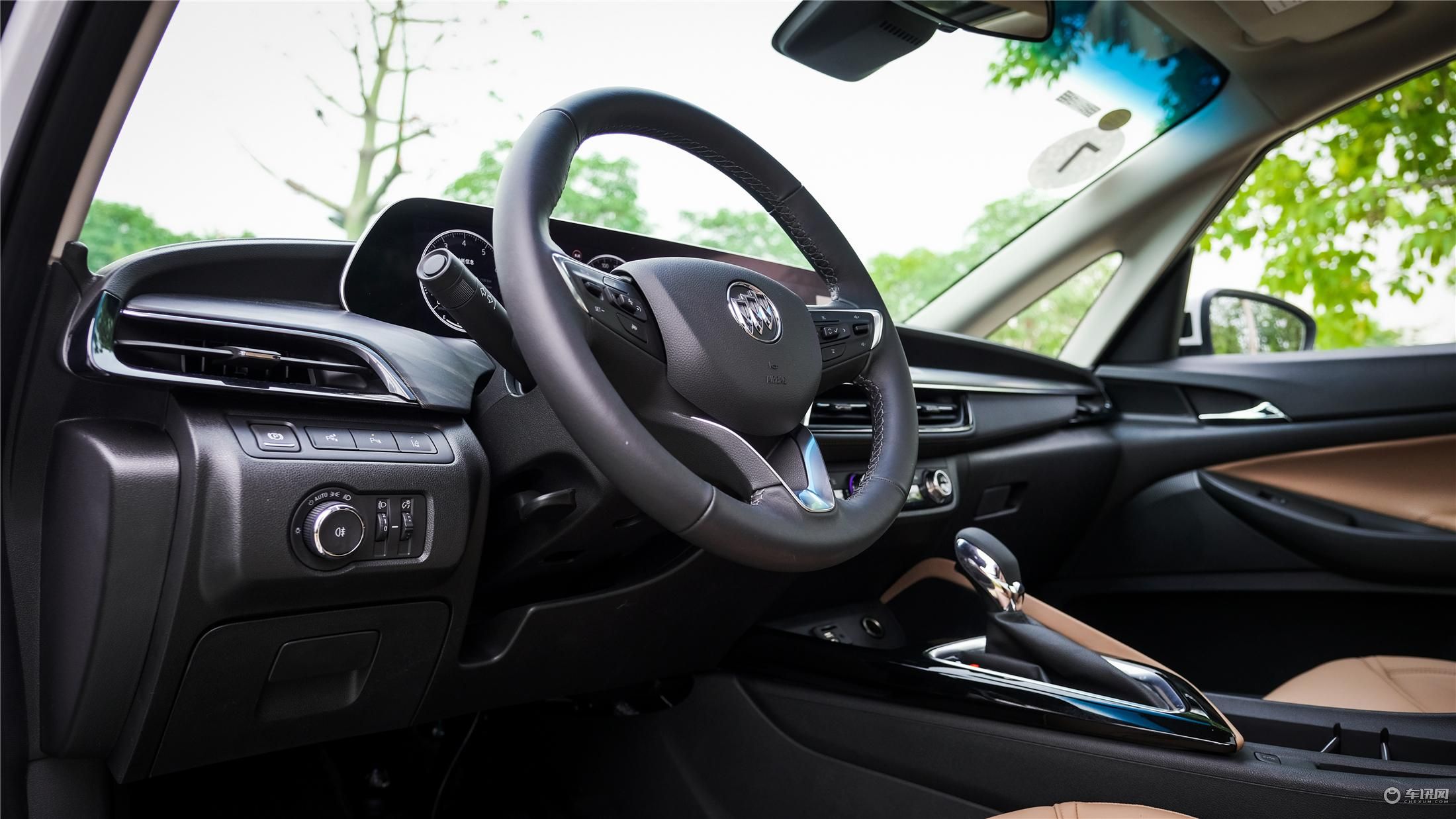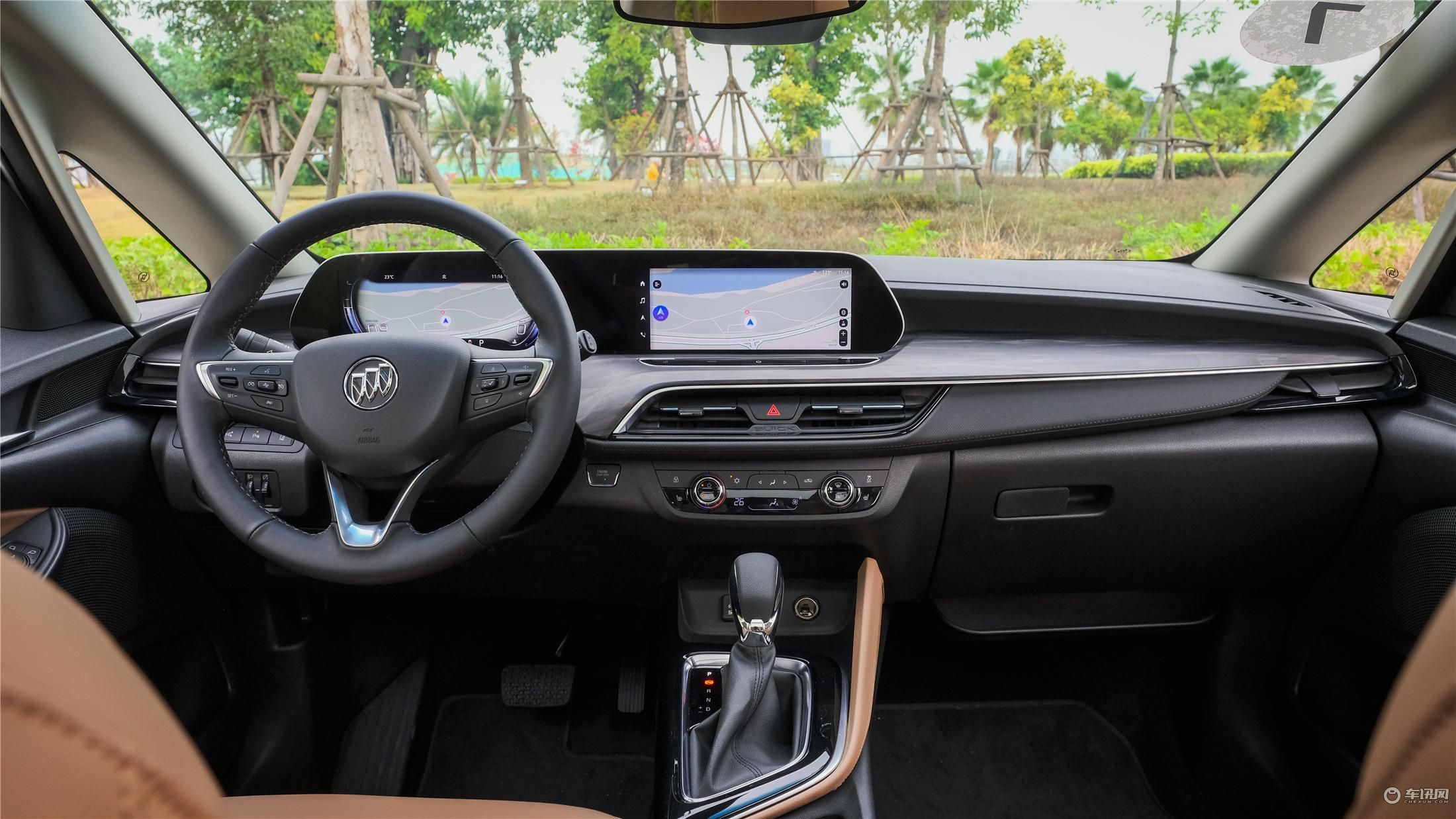 而且在新车上面我们可以看到一些别克的小心思,我们实拍的车型使用的是一个全新的配色,这个棕色看起来会有更高级的感觉,而且配合车内的按键材质,看起来确实有点更高级别车型的意思。