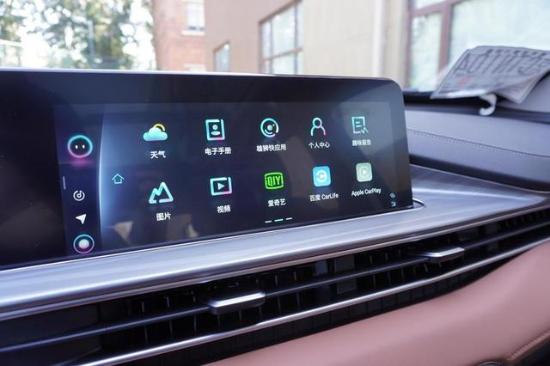 中控台上采用与奔驰相同的双联屏设计,12.3寸仪表+12.3寸中控屏不但能满足当下消费者对科技豪华感的追求,而且中控屏的UI界面和显示效果也都不错。中控台下方也保留了一些传统物理按键,方便盲操。