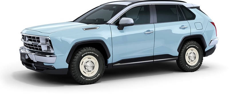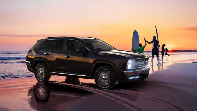 尾部同样是复古风格,尾灯采用竖向布置,尾门中央则是一大块黑色面板,还有一条横贯车身的粗壮镀铬饰条,原本RAV4的牌照框则被下移到了保险杠位置。至于动力系统,光冈Buddy将延续RAV4上的2.0L、2.5L自然吸气发动机,内饰部分则依旧保持神秘,没有对外公布。