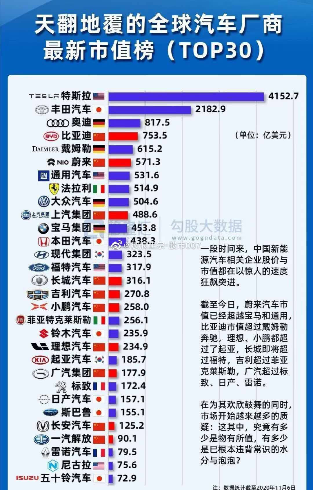 最近蔚来汽车的股票一直处于狂涨状态,截止美国东部时间11月5日收盘,蔚来汽车股价达到了42.35美元,总市值达到了571.3亿美金,约合人民币3788亿元。对比之下,蔚来的市值已经超过了通用汽车(约合人民币3525.6亿元)以及老牌豪华车企宝马(约合3332.8亿元),成为了仅次于比亚迪(5055.25亿元)的中国市值第二大汽车品牌。