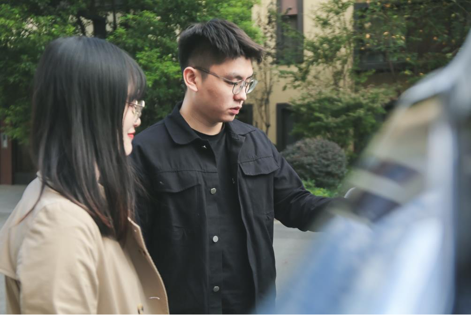 这边阿宇刚停好车,圆圆也非常默契地踩着点出了门。但在走向副驾驶座位之前,圆圆却被阿宇眼疾手快地拉到了主驾一侧。