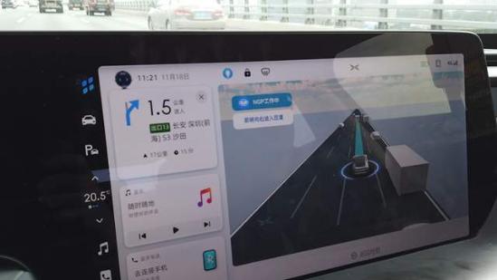 驾驶的智能能力:小鹏的NGP测试版在驾驶部分有3个比较突出的点,第一点在于,进入高速公路汇入主路时,身处慢车道进行加速,如果前方出现慢车,NGP会直接给到提示并在虚线完成快速的变道超车;
