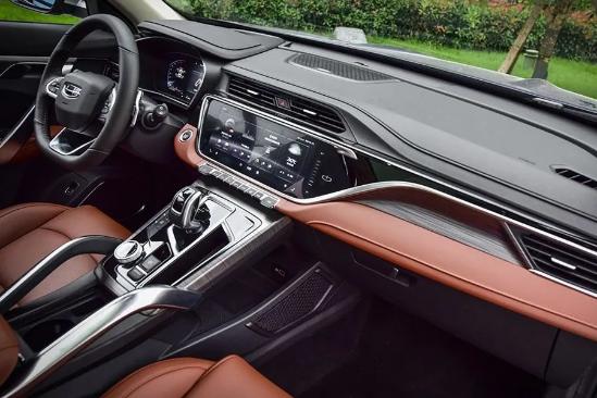内饰方面,吉利博越PRO也采用全新的设计,布局相当合理,且在设计层面也给人惊喜。12.3英寸的中控触摸屏与12.3英寸的全液晶仪表组合,令车厢内更具科技氛围。而大量软性材质的包裹、皮质的覆盖以及多处银色元素的点缀,则使得整车档次感油然而生。