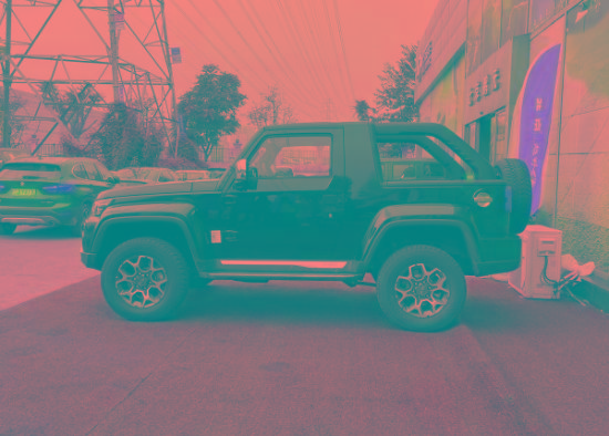 车身侧面来看,凸起宽大的轮眉,越野范十足。新车后面部分的外壳换成了两个粗大的防滚架,后车厢变成了后货箱,使新车的实用性增强。新车采用短轴距的设计,增强了越野性能。新车提供6种车身涂装,分别是极夜黑、雪域白、火焰红、丛林绿、谧夜蓝、深海蓝。车尾悬挂了后备胎,尾灯采用的是矩形尾灯,与车头大灯的设计相呼应。新车的长宽高分别为4350/1925/1865mm,轴距为2465mm。