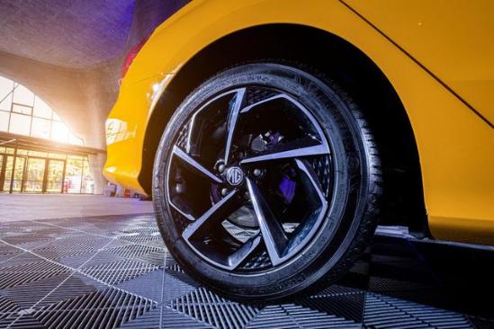 全新MG5的主打色叫"核能黄",理念来自核能爆破的撞击和震撼,除了这个颜色外,还有赛博灰、赤焰红、冲浪蓝、雪山白、曜石黑五种配色,突出个性运动。