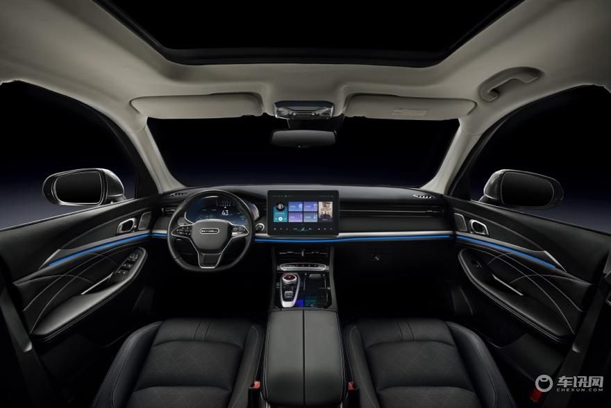 内饰方面,新车采用T型座舱,搭配液晶仪表盘以及一块12.8英寸的液晶多媒体中控屏,辅以镀铬饰条做装饰,使得内饰更加简约大气。