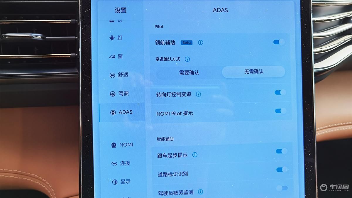 而且在导航辅助开启期间,我们车辆在自动变道前,或者转入某个匝道前,又或者是离开导航辅助的路段等,NOMI都会提前发出语音的提示,让人感觉好像是拉力赛车上坐了个领航员一样,能提前告知接下来的动作,这个体验是非常好的,尤其对于我这种不熟悉当地路况的外地人,显得相当友好。