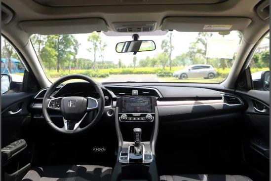 相比于2021款丰田雷凌双擎运动版,本田思域有着足够运动的外观设计,但是在内饰方面却稍显老气。其内饰主色调为黑色,上下分层设计打造出了不错的层次感,而三幅式方向盘、7英寸中控屏(高配车型)等熟悉的配置都能够在车舱内看到,唯一能够激发驾驶欲望的设计要属红色的一键启动按钮和高配运动版车型上配备的模拟换挡拨片了。