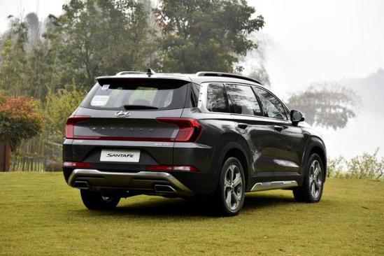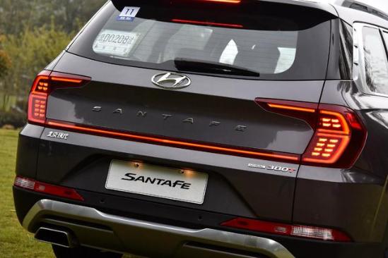 车尾采用了贯穿式LED尾灯设计,C字形的造型也和底部连通,看起来符合时下的设计趋势,车身标识"SANTAFE"也居中在尾门处,起到一种彰显身份的效果,后包围还加入了银色装饰件进行点缀,整个尾部辨识度和运动感营造上还是比较到位。