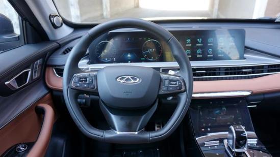 瑞虎8 PLUS内饰采用了环抱式中控台设计,各功能区域划分清晰,无论设计、品质还是科技感都有了大幅提升,中控台区域上方大部分材质都是软质材质,黑棕双色的内饰配色给人以温馨舒适的氛围。