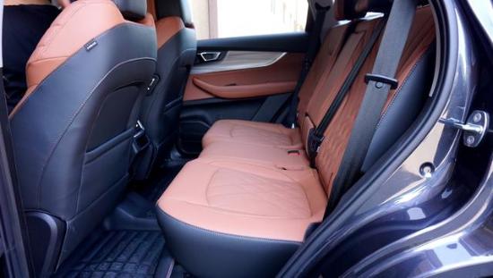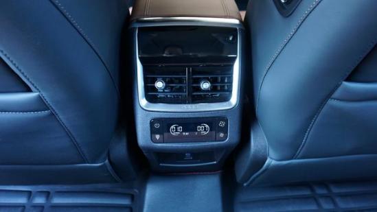 第二排座椅材质和前排保持一致,可进行前后和靠背角度的手动调节,坐垫也进行了加长设计,但相比第一排稍硬,后排配有独立空调出风口、调节按钮以及温度显示屏,下方还设计了一个USB充电接口。