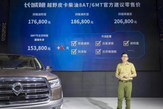 此外,为满足专业越野车手及改装爱好者需求,长城炮越野皮卡还推出了一款柴油6MT“专业定制版+X”车型,售价15.38万元起,提供前/后差速锁、绞盘等选配配置。