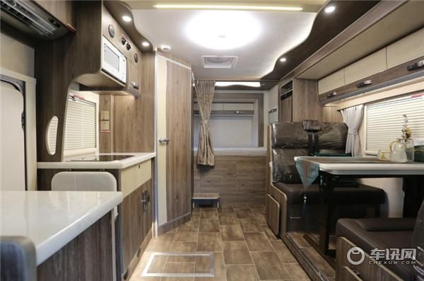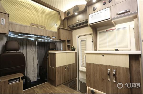 位与车厢尾部,有张2210X1200mm双人床,从而使得整车能够容纳5-6人同时休息,是大空间、大容量的经典设计。