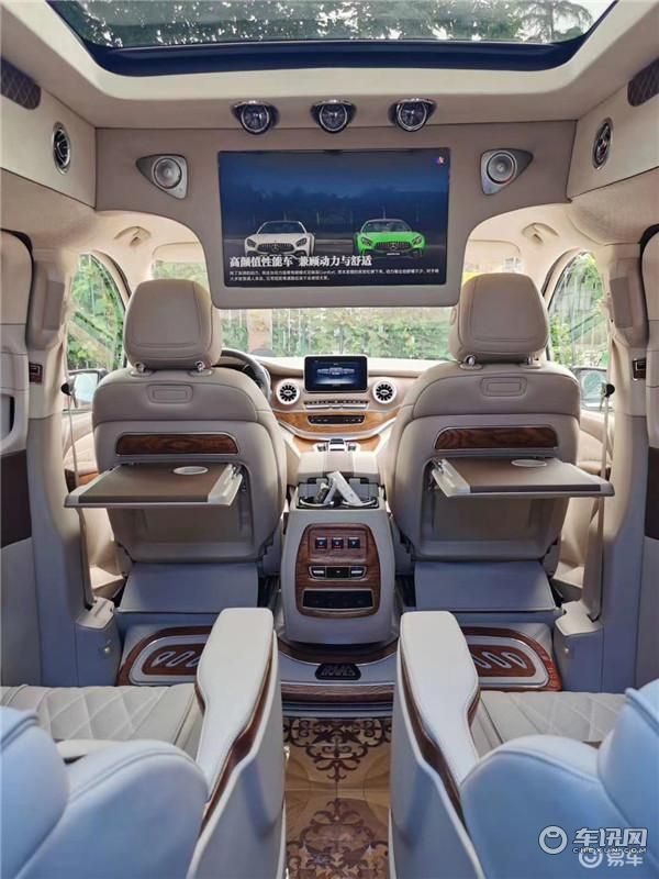 在奔驰威霆商务车的后部贵宾舱中我们可以看到,智能系统与高端定制级商务车结合的全新突破。吸顶电视搭配进口音响系统,给你一个简洁的影院质感。色彩柔和易放松,车身两侧电动滑门更方便出入,整车降噪隔热处理,高光泽钢琴漆装饰面板,纯手工皮质包覆,私密玻璃加高触感电动窗帘更加拥有私密性。
