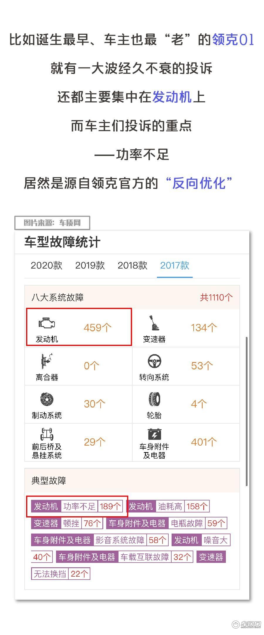除了跟动力加速性有关的软件、硬件需要车主持续等更新,领克家车机不稳定、蓄电池寿命短的一众小毛病也经常被车主吐槽。