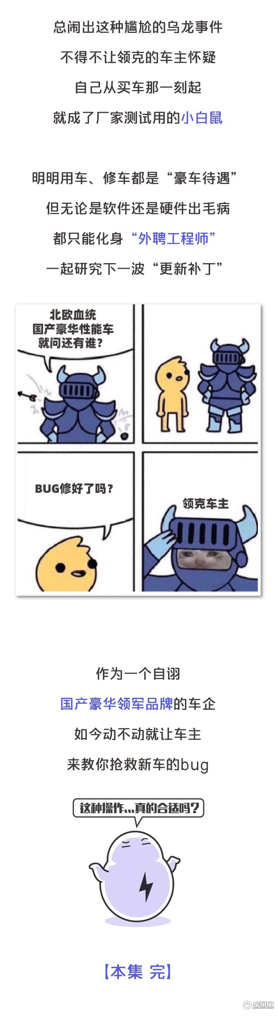 虽然说车无完车,作为新品牌的领克,在售后发现问题和车主反馈后处理也都比较积极。但很多娘胎里带出来的大小问题,可能也是领克急于上架新产品,而在测试环节有所欠缺造成的。