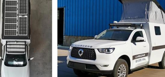 前脸还是长城炮的造型,基本无差,只是如果你能够俯瞰这款车,你就会看到TA的身躯被拉长和加宽。也就是说这款车具有越野的属性,但是因为后部设计成为生活区,所以也很适合野外生活。据说这款车在选配上面有备胎支架、侧遮阳棚以及车顶太阳能电池板等等,这不都是让你出去野营的装备吗?