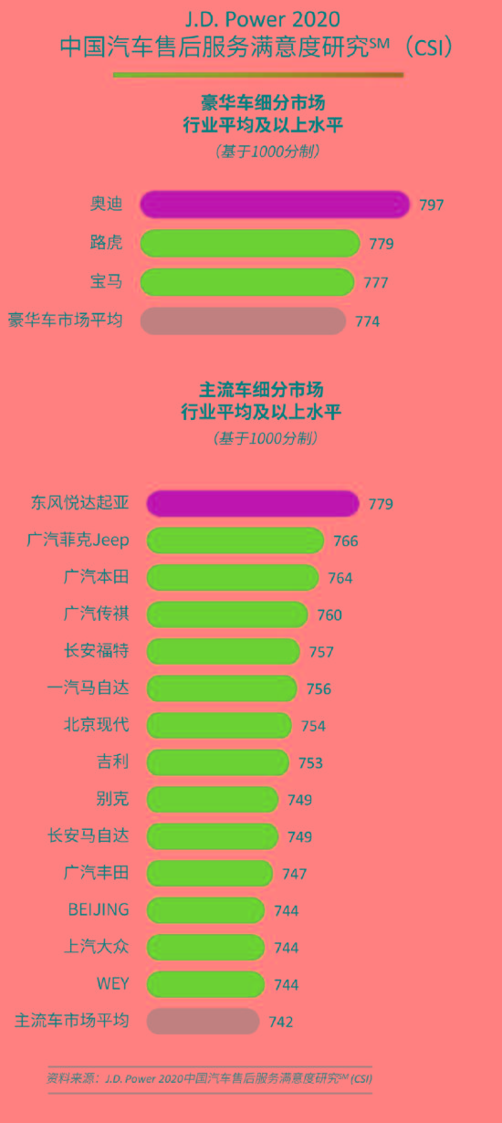 可能很多人不明白东风悦达起亚市场表现全面向好的原因,但如果了解一下11月5日J.D. Power(君迪)发布的2020中国汽车售后服务满意度(CSI)排名情况,我们或许可以从中看到东风悦达起亚市场销量持续增长的原因。在今年的中国汽车售后服务满意度(CSI)排名中,东风悦达起亚以779分的总成绩荣登主流车细分市场榜首,这也是东风悦达起亚继2019年获得这一殊荣后,今年再一次折冠。
